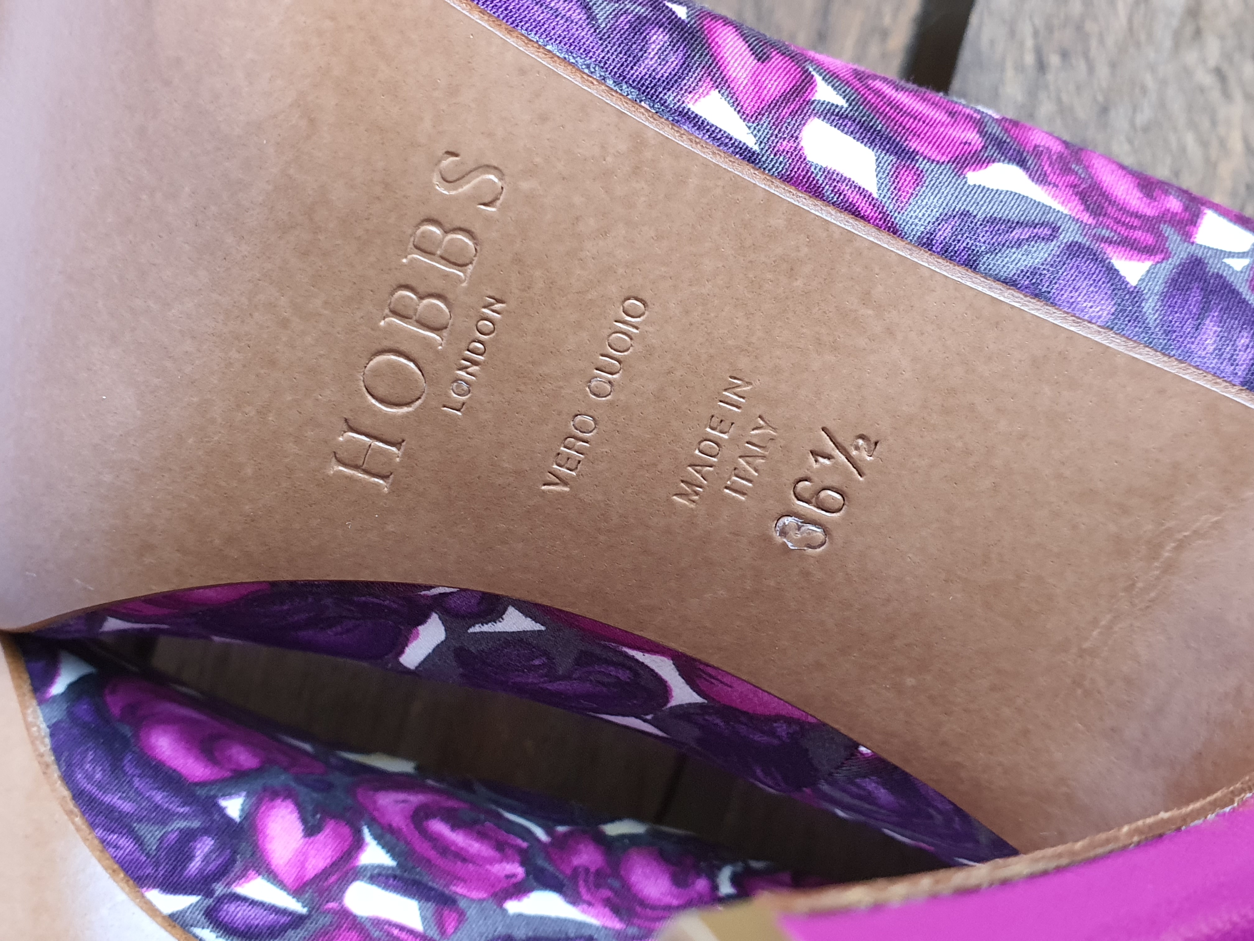 Another lovely pair of Womens Heels from Reloveditems pre-loved shoe collection. Here we have a pair of 4" Hobbs London Purple Flower design Canvas shoes that are in great condition with no wear to either Soles or Heels.