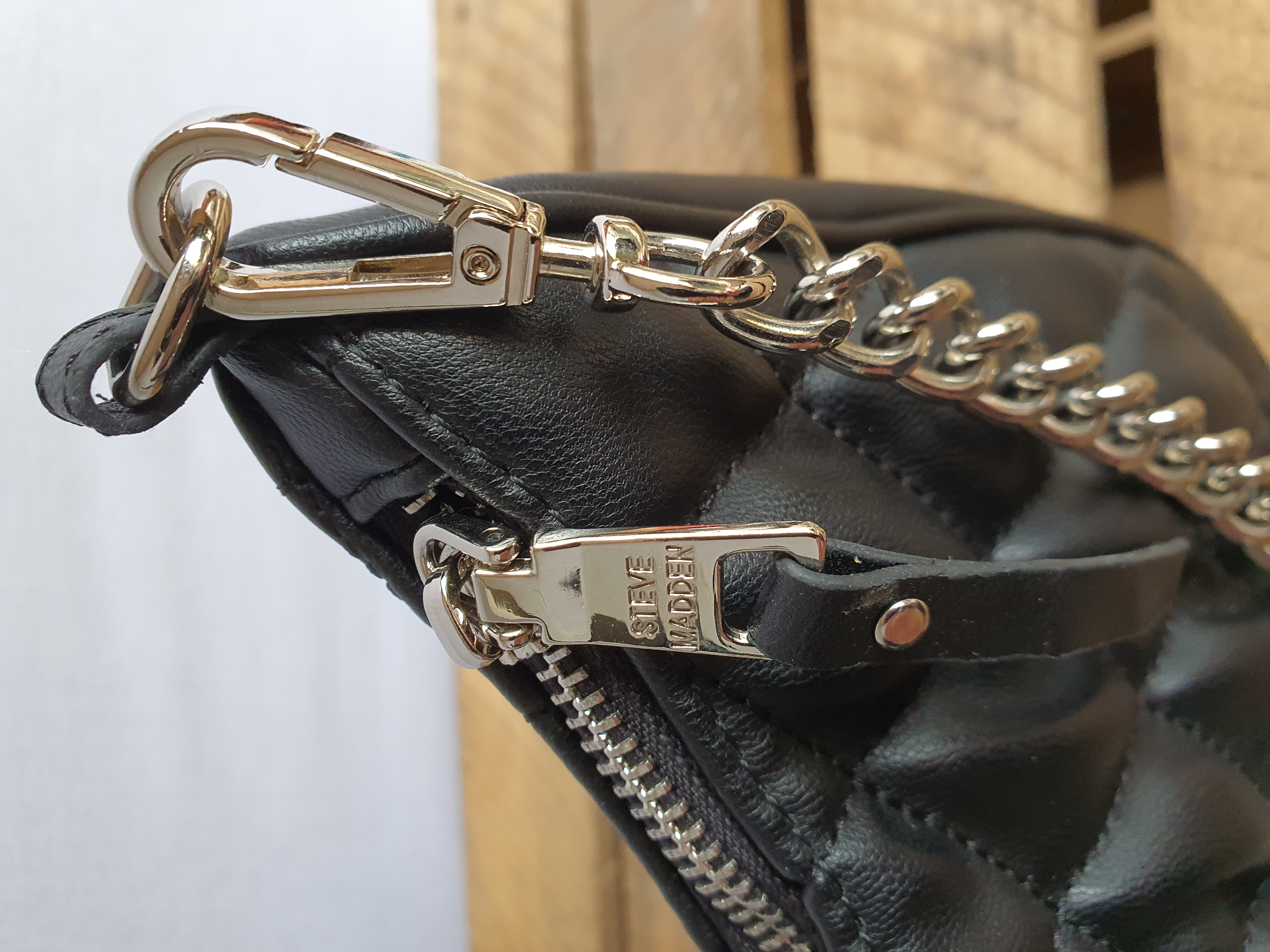 Added to our pre-loved but Like New Accessories Collection here at Reloveditems is this lovely Black Handbag with Silver Curb Chain from the Steve Madden Brand.