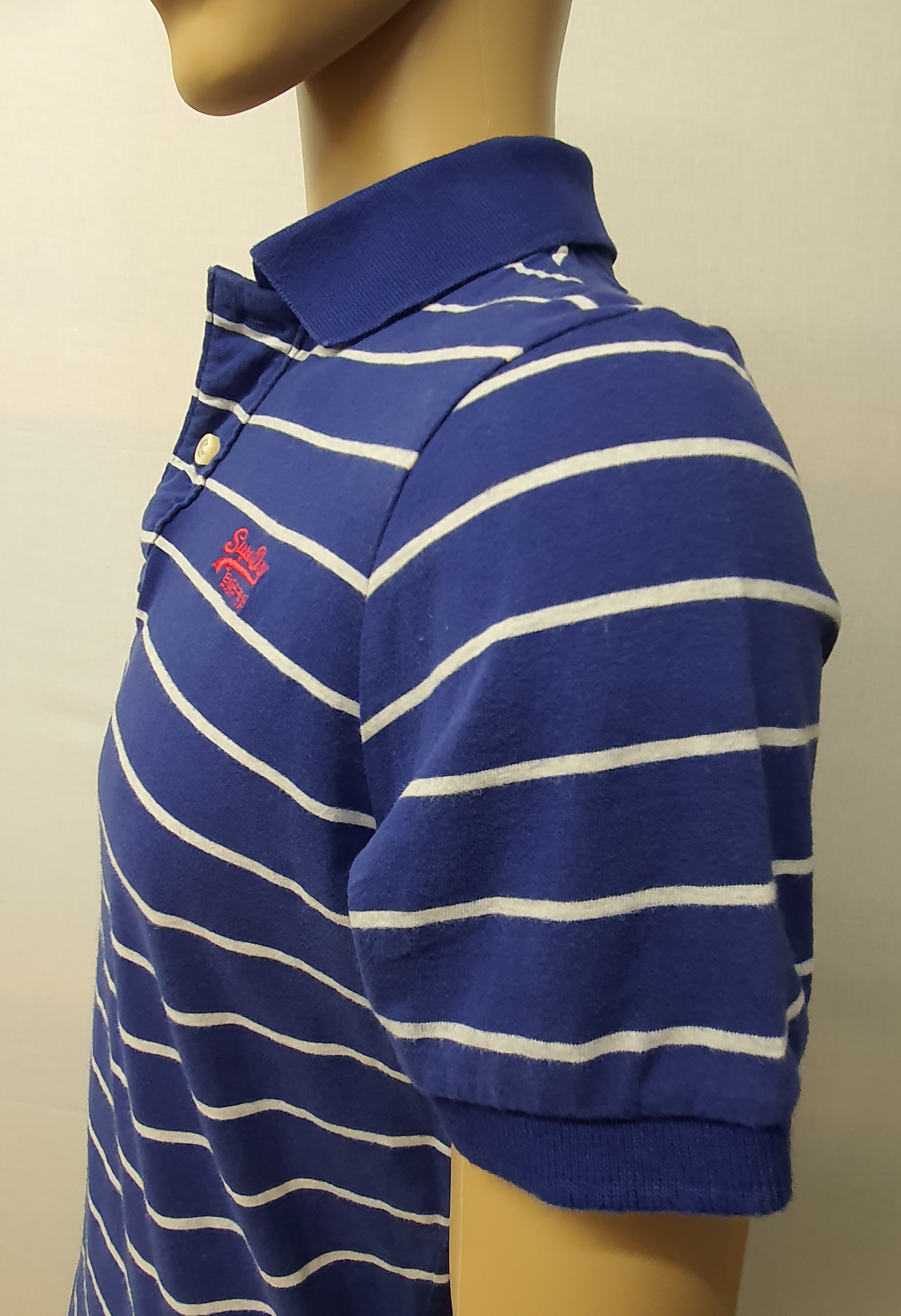 Here we have a very nice SUPERDRY Blue and White Striped Polo Shirt in Size Large.