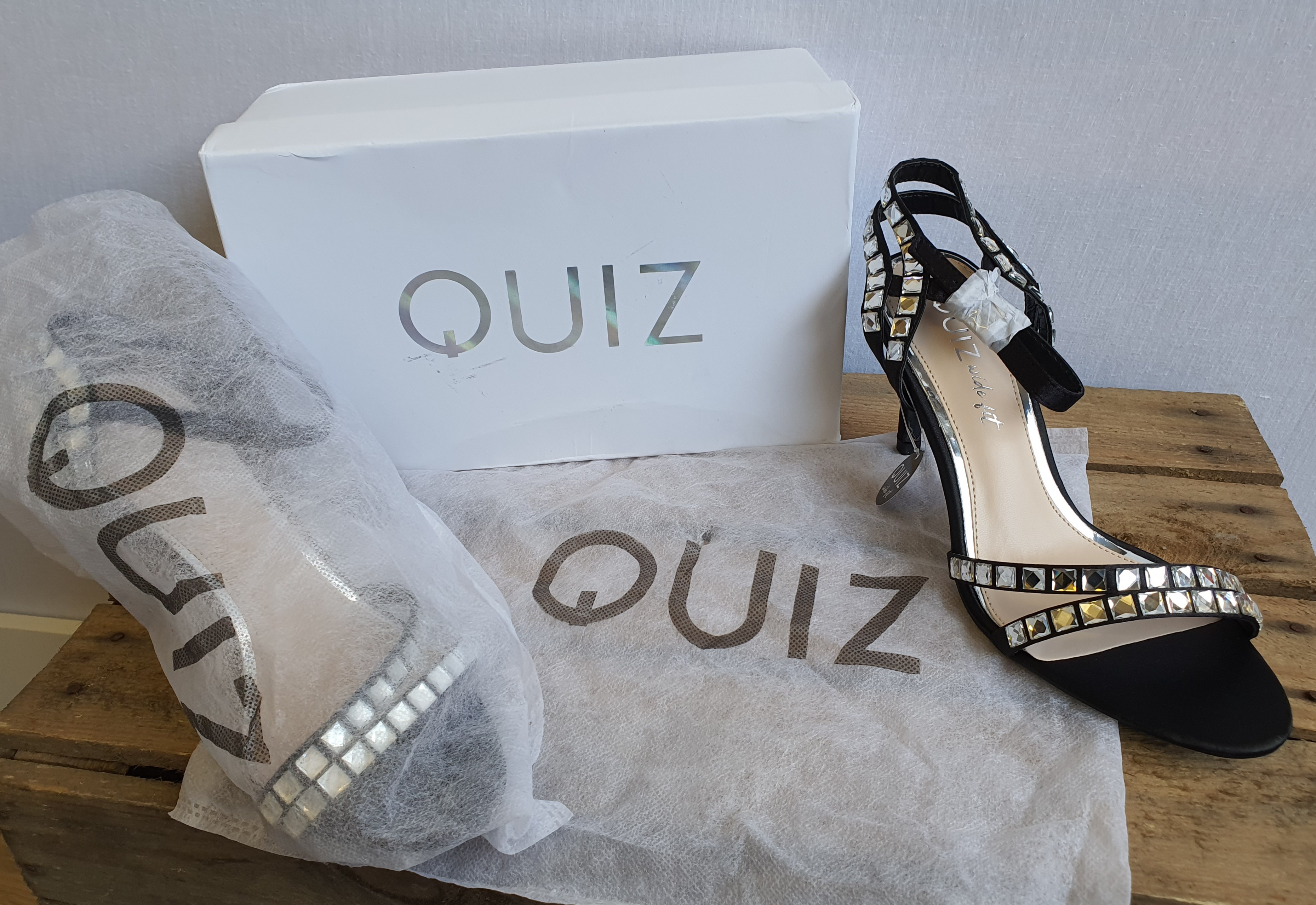 QUIZZ Wide Fit Black & Sequin Heels Size UK 5 - NEW